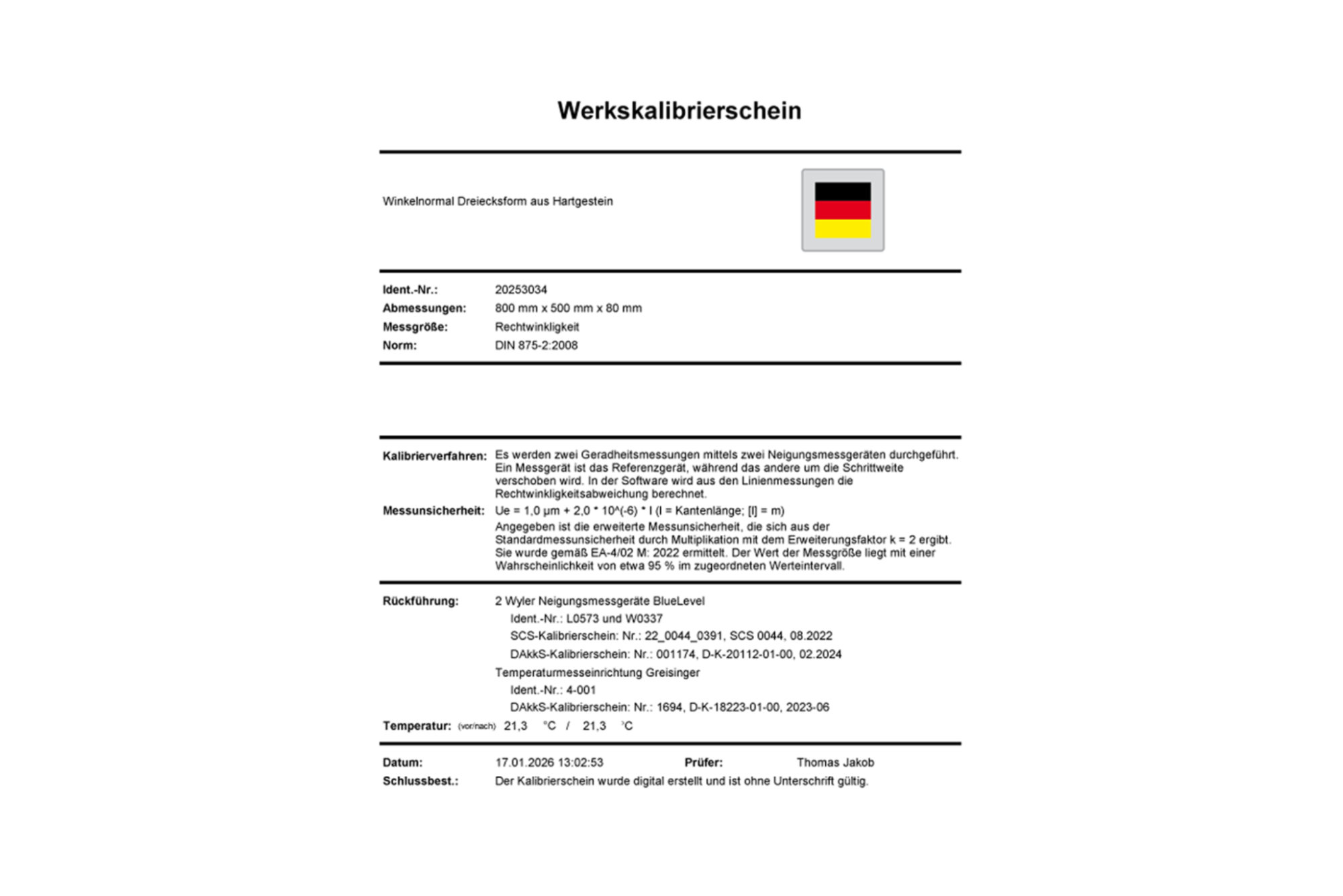 - Inklusive Werkskalibrierschein
